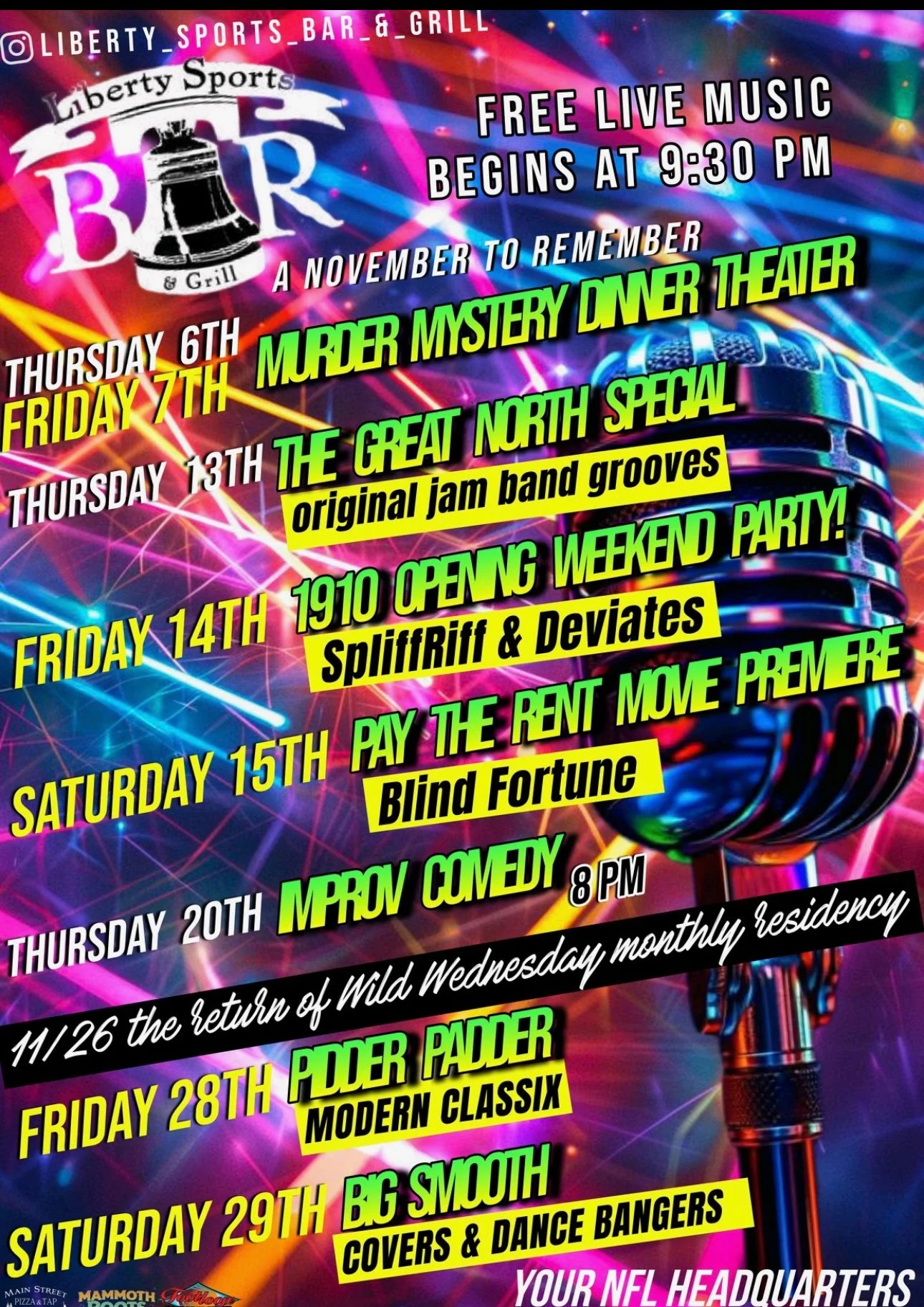 Catch nationally touring music acts, local favorites, the big game, live comedy and MORE with us at Liberty Bar